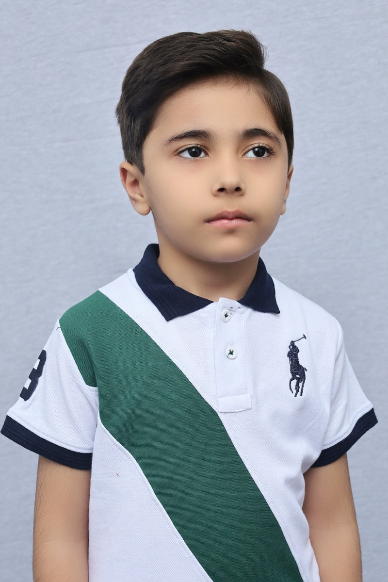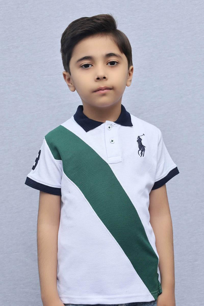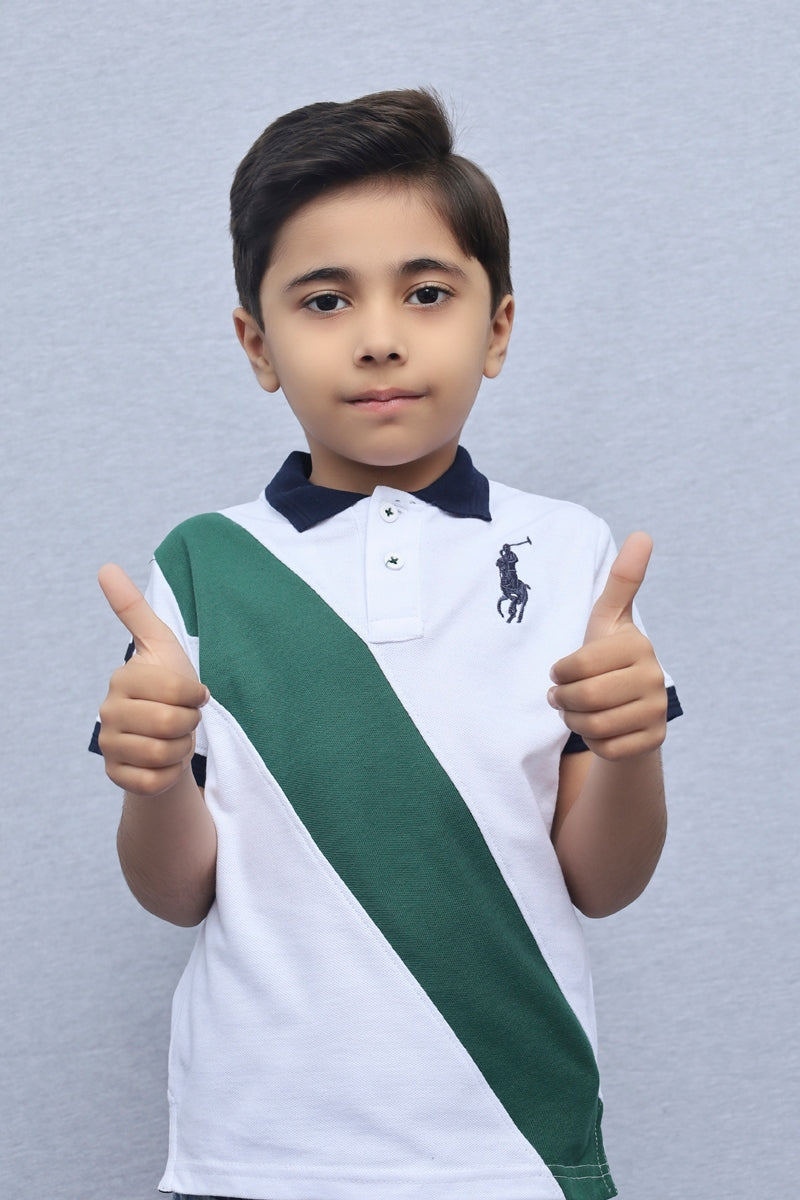 Kids Collared Polo Shirt White Green