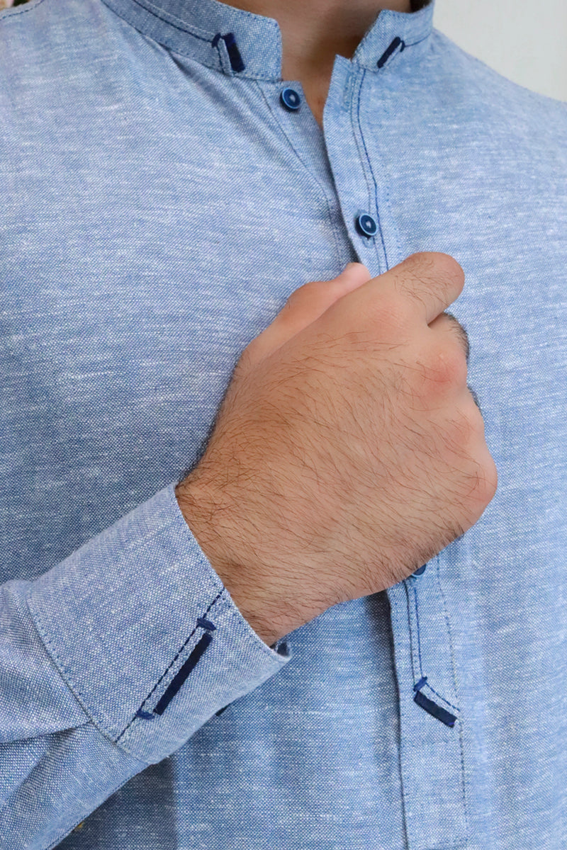 Premium fabric (China Cotton) Design (Cut & Sew With Contrast Fabric)kameez shalwar with mandarin band/collar with cuff & Contrast textured buttons.