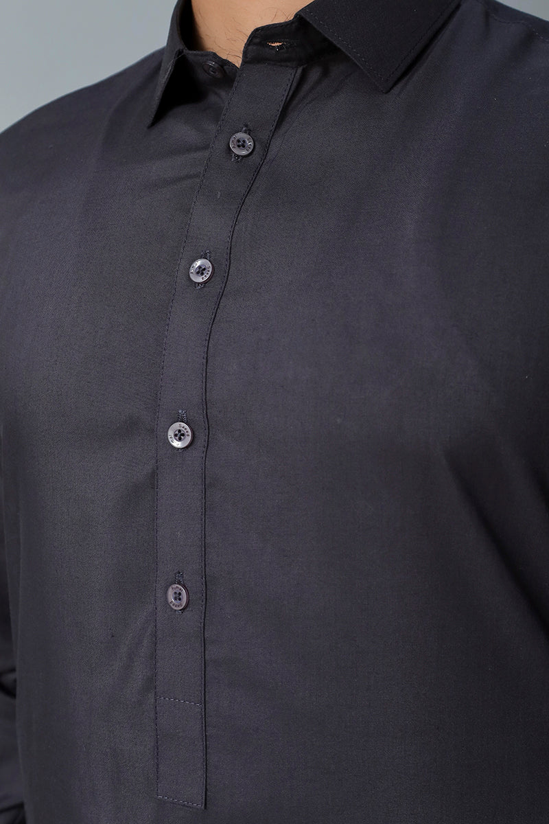 Premium fabric (Wash-n-Wear) kameez shalwar with mandarin band/collar with cuff & Contrast textured buttons.