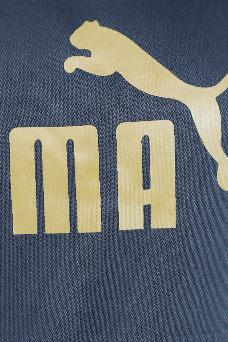 "Polyester, Spandex Fabric with Half Sleeve Top, Contrast Block With Print Logo.
