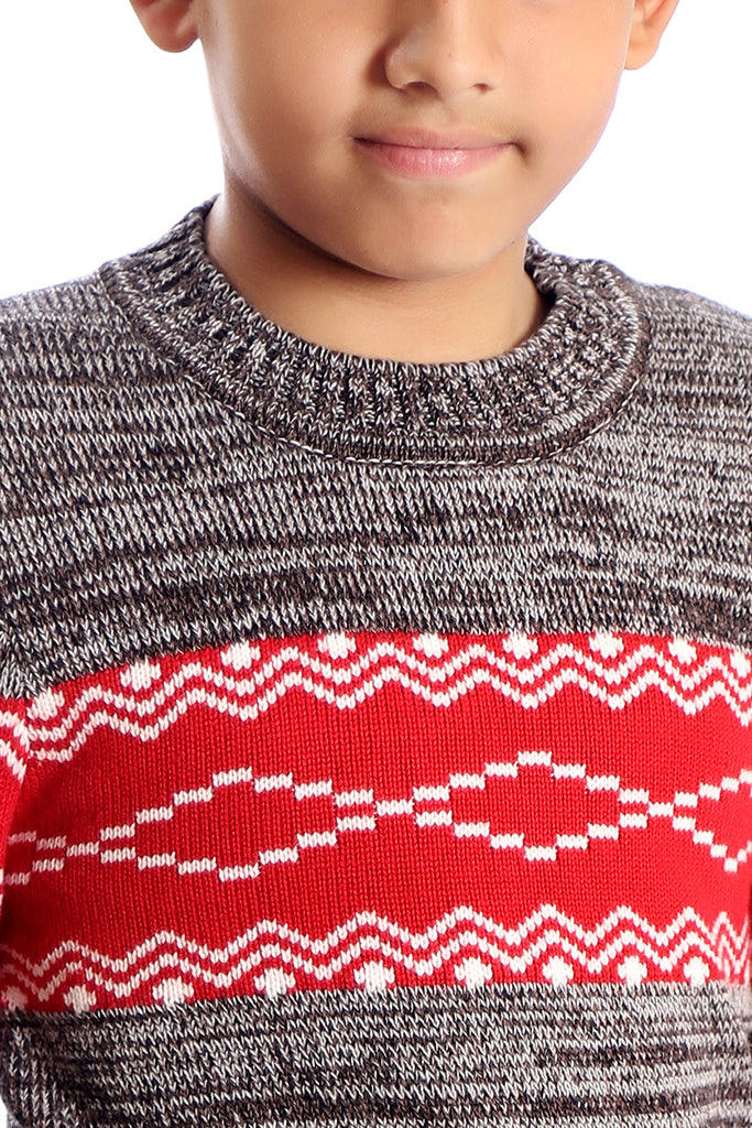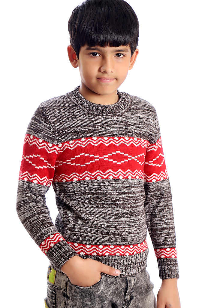 KID'S HEAVY KNIT JERSEY COLOR FEROZI WITH BROWN CHECK ROUND NECK SHAPE