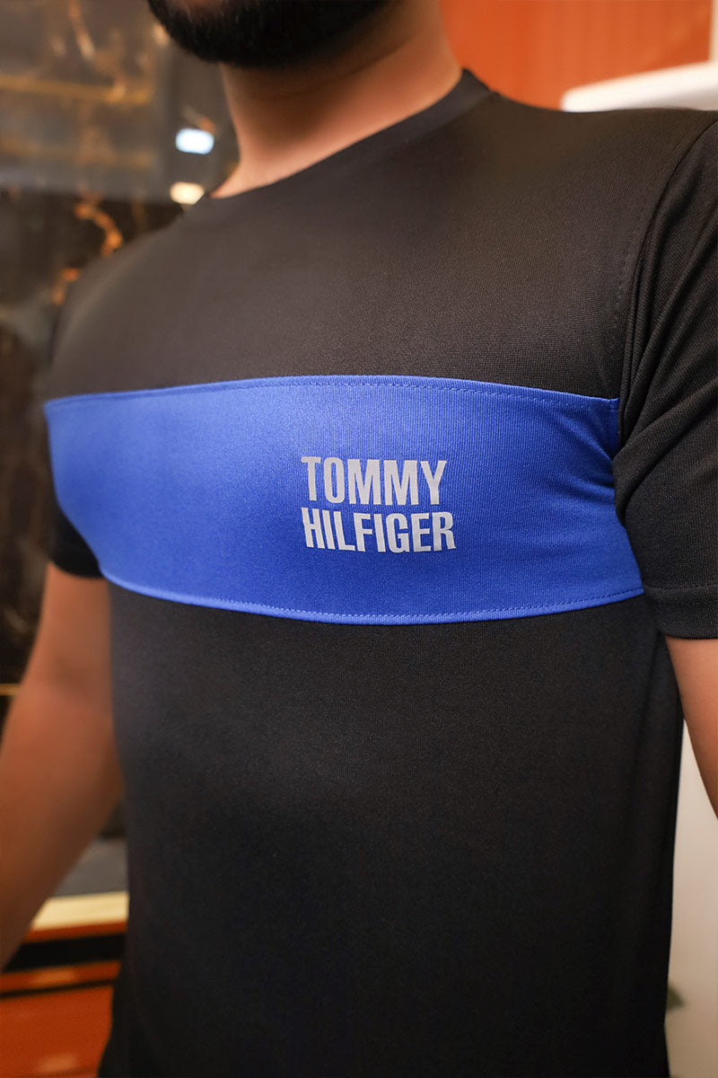 Polyester, Spandex Fabric with Half Sleeve Top, Contrast Block With Print Logo.