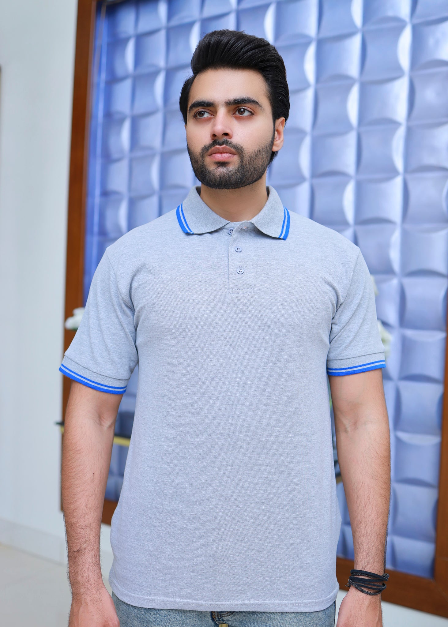 Collared polo shirt made of cotton with a mercerised finish. Button-up front, short sleeves and split hem.