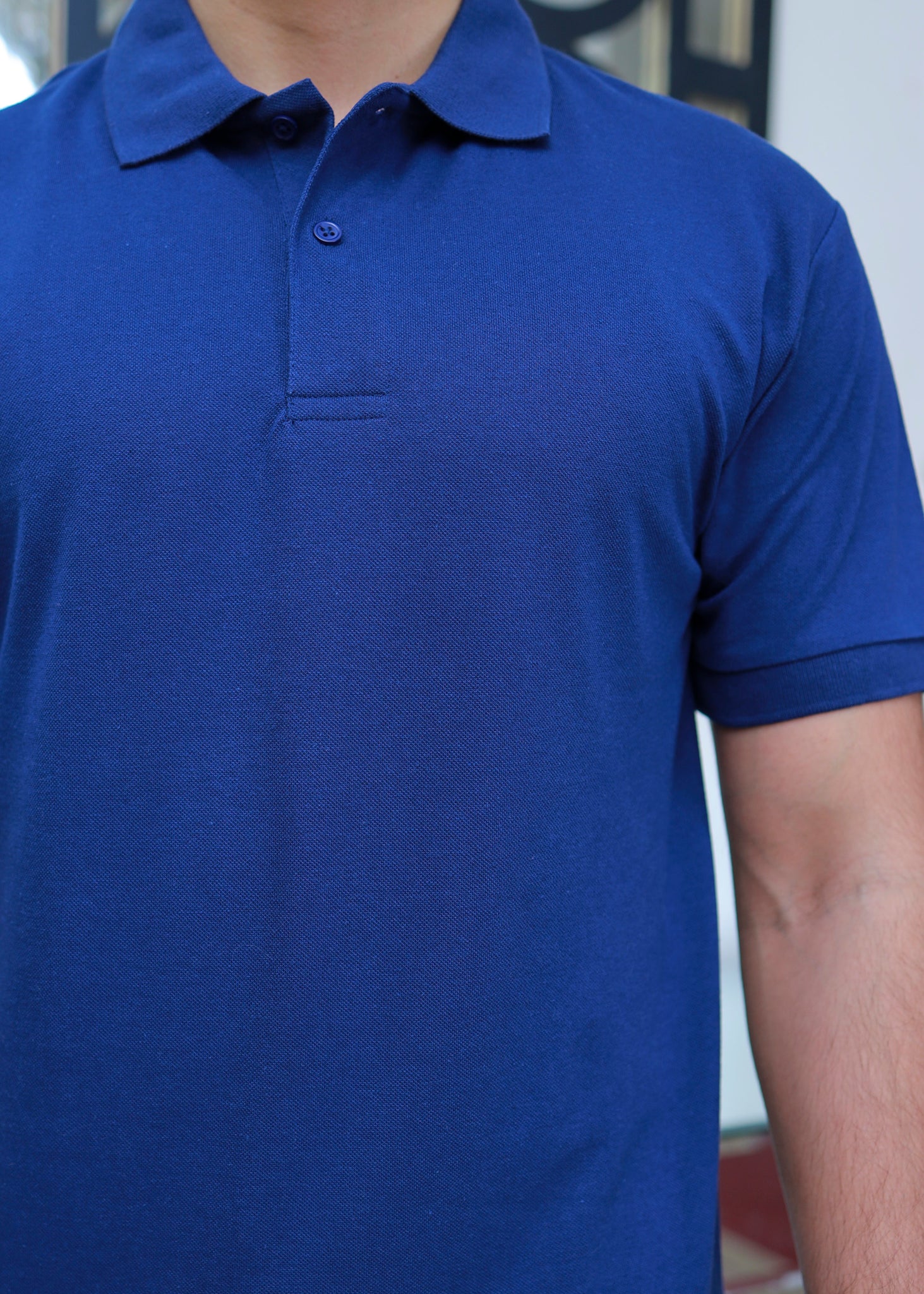 Collared polo shirt made of cotton with a mercerised finish. Button-up front, short sleeves and split hem.